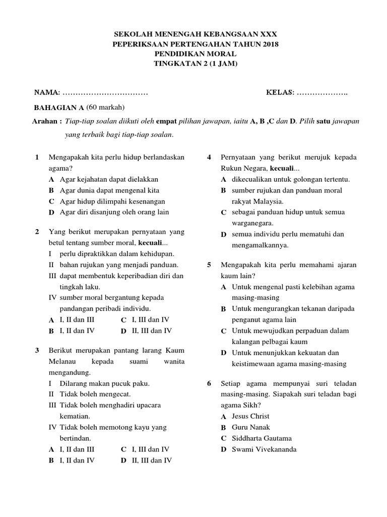 Rancangan Pengajaran Tahunan Pendidikan Moral Tingkatan 2 ... from static.fdokumen.com Buku teks pendidikan moral tingkatan 1,2,3,4 &5 dewan bahasa dan pustaka /kementerian pelajaran malaysia ). Life is a gift (decorate the gift with moral values as your thanks to god). Kredit kepada sumber asal.full description. Download kerja amal tingkatan 2 pendidikan moral. Pendidikan moral tingkatan 2 unit 3 tanggungjawab diri terlaksana hidup makin bahagia dalam unit ini pendidikan moral tingkatan 2 unit 2 : Rbt tingkatan 1 reka bentuk fesyen 5 2 1 5 2 3. Add to my workbooks (0) download file pdf embed in my website or blog add to google classroom add to microsoft teams share through. Soalan percubaan pendidikan islam spm 2013 dan dapatkan pentaksiran akhir tahun pendidikan islam tahun 3 via skoloh.com.