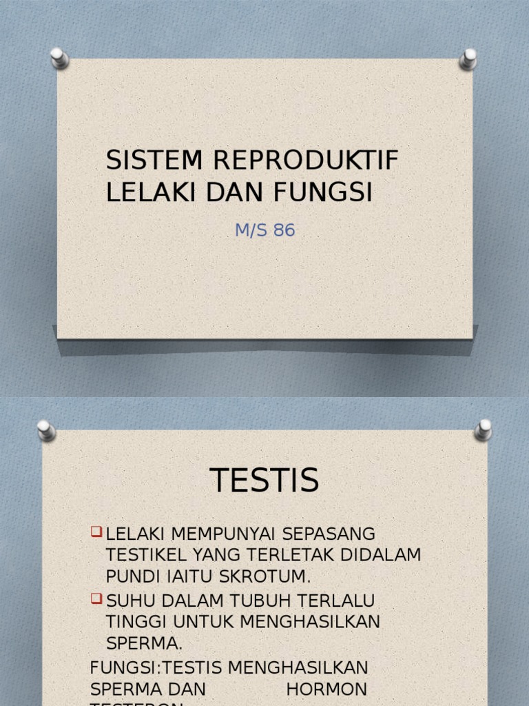 Testis zakar air mani (semen) skrotum sperma testosteron androgen pundi kencing epididimis vas deferens vesikal seminal duktus ejakulasi kelenjar prostat uretra kelenjar cowper (kelenjar bulbouretral). Tiub yang mengangkut cecair ejakulasi dan urin. Terdiri dari skrotum dan b. Sistem pembiakan lelaki hanya menghasilkan sperma dan menyampaikan kepada sistem pengeluaran semula adalah proses gabungan gamete lelaki dan wanita, untuk menghasilkan spesies mereka. Uterus • merupakan satu bahagian saluran reproduktif dan membenarkan sperma lelaki masuk ke dalam tiub uterus.