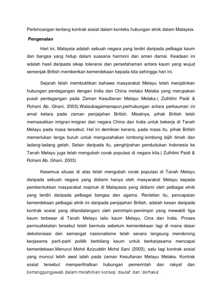 Oleh itu tidak hairanlah mutakhir ini mereka begitu kritis dan semakin berani memperkatakannya. Ulasan article hubungan etnik ulasan artikel disediakan untuk: Kontrak sosial dalam perlembagaan malaysia. Agama ciptaan manusia (agama alam) agama yang lahir dalam kebudayaan, dibentuk oleh falsafah masyarakat dan dirumuskan oleh ahli fikir masyarakat seperti agama primitif, anamisme, buddha, hindu, sikh, konfucius, tao, shinto dan mesir kuno. Semangat hubungan etnik dalam kontrak sosial.