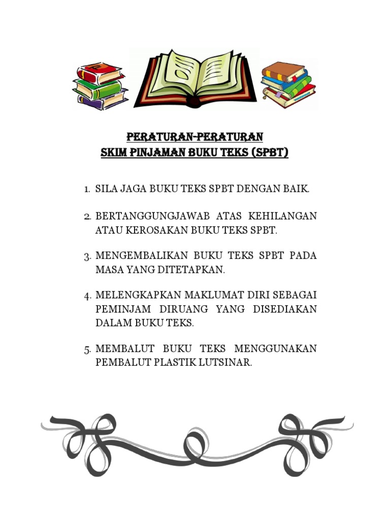Perpindahan murid perpindahan murid dalam negeri, murid dikehendaki membawa bersama sama : Kementerian pelajaran telah melaksanakan beberapa program bantuan penting antaranya termasuklah skim pinjaman buku teks (spbt). Kementerian pelajaran malaysia telah melaksanakan beberapa bantuan penting, antaranya termasuklah skim pinjaman buku teks (spbt). Pada tahun 1975, program ini dilancarkan untuk semua sekolah kerajaan dan sekolah bantuan kerajaan. Sop pemulangan dan pengagihan buku teks skim pinjaman buku teks (spbt) tahun 2021: