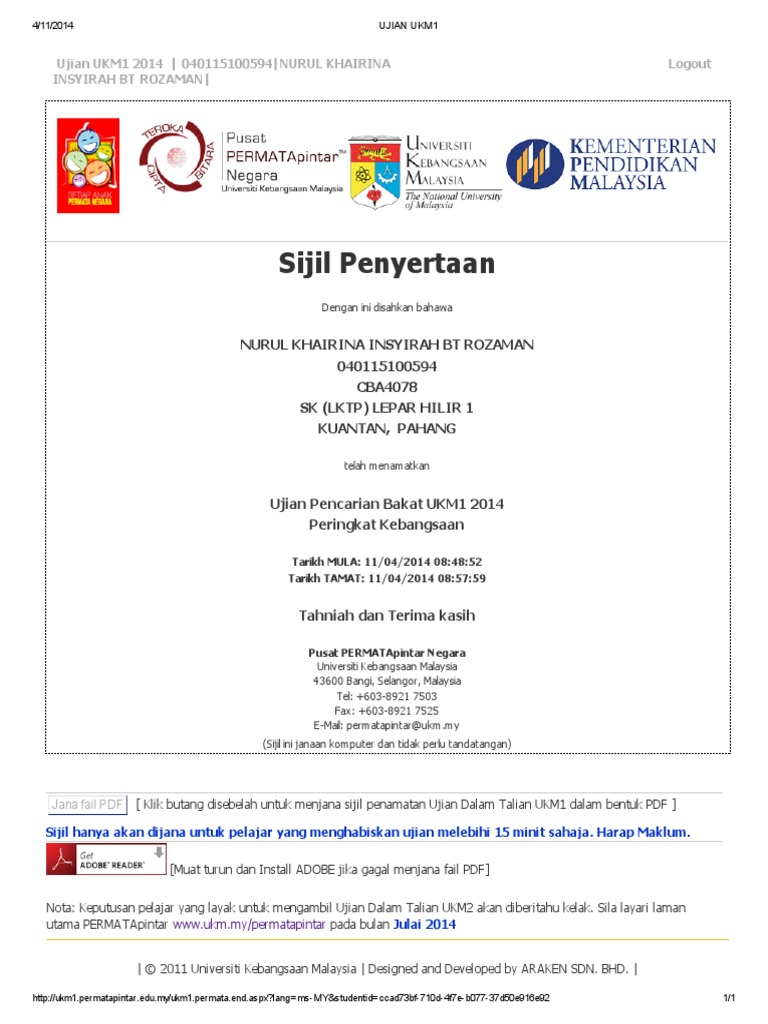 This music video made by 2k4 student from kolej permatapintar negara, ukm. Selesai sesi menjawab soalan ujian permata pintar ukm 1 untuk kelas tahun 5 & 6 di makmal komputer. Tiada sebarang caj dikenakan untuk mengambil ujian ukm1 dan ukm2. Asean plus three junior science odyssey 2018. * jika mykad/mykid# yang sudah didaftarkan sebelum ini mempunyai bukan nombor yg betul, sila emel permatapintar@ukm.edu.my dengan memberi nombor yang betul untuk mykid/kad pelajar dan.